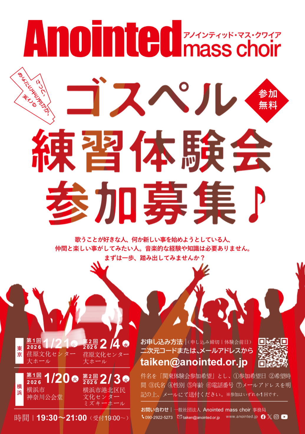 1・2月に東京・横浜でゴスペル練習体験会を開催!